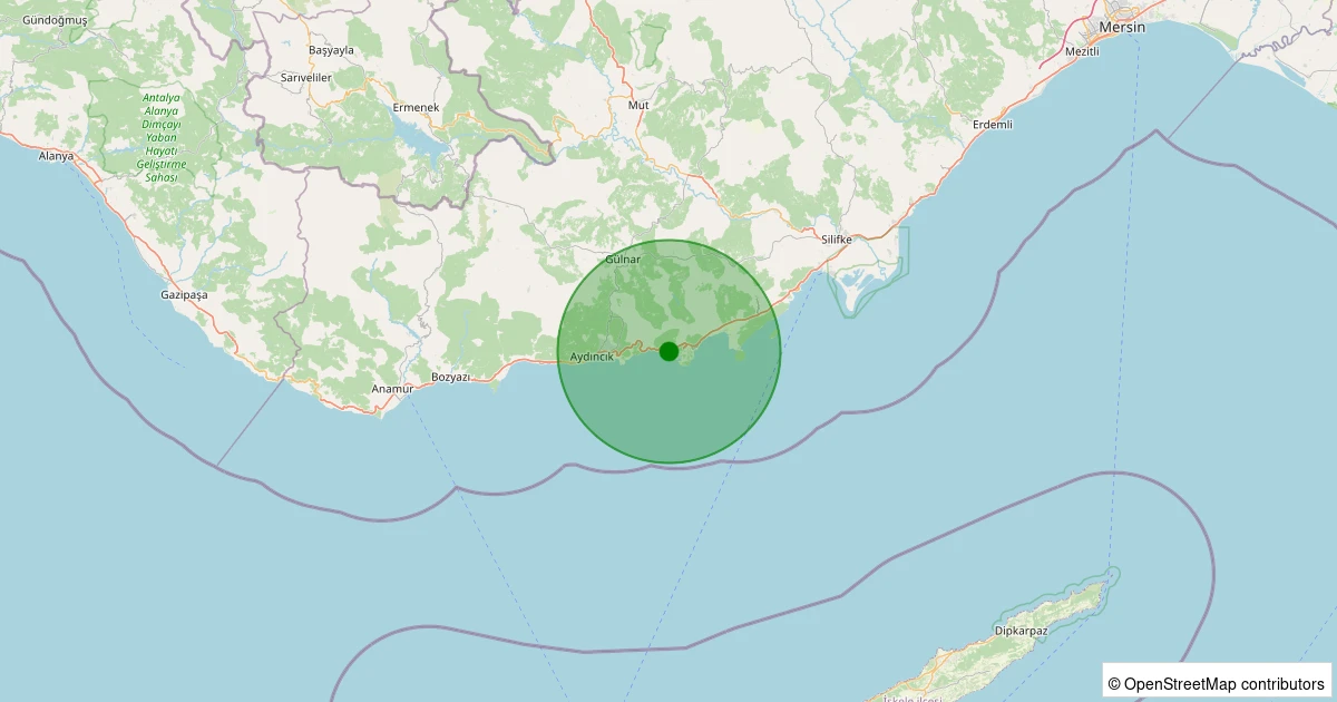 Son 7 gün içinde Gülnar - Koçaşlı noktasından 100 km yarıçap içerisinde meydana gelen diğer depremler: