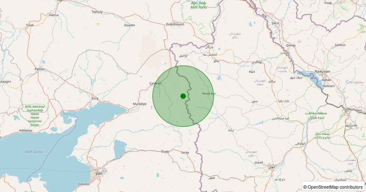 Son 7 gün içinde Çaldıran - Beydoğan noktasından 100 km yarıçap içerisinde meydana gelen diğer depremler: