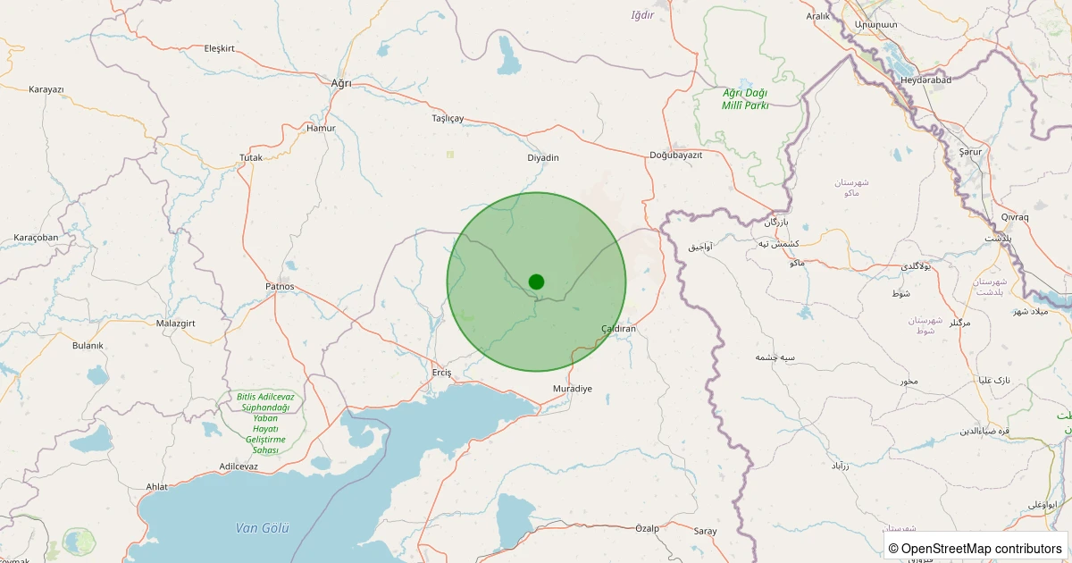 Son 7 gün içinde Diyadin - Dedebulak Köyü noktasından 100 km yarıçap içerisinde meydana gelen diğer depremler: