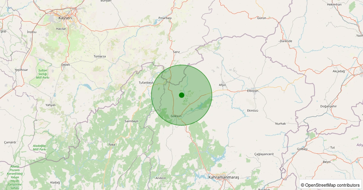 Son 7 gün içinde Göksun - Bozhüyük noktasından 100 km yarıçap içerisinde meydana gelen diğer depremler:
