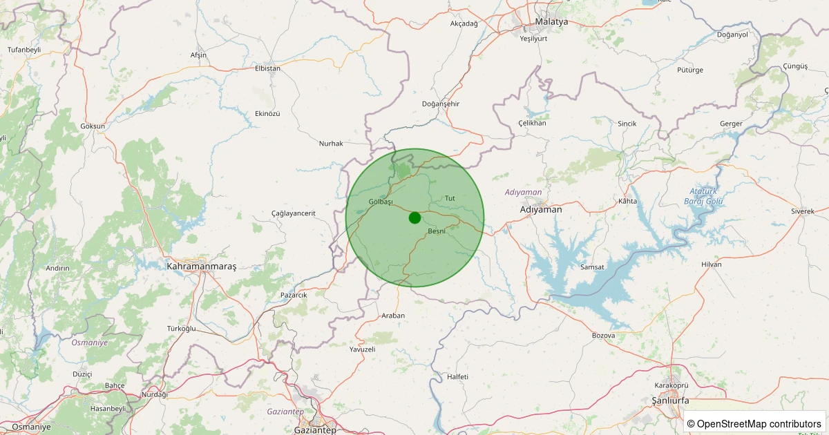 Son 7 gün içinde Besni - Kızılpınar Köyü noktasından 100 km yarıçap içerisinde meydana gelen diğer depremler: