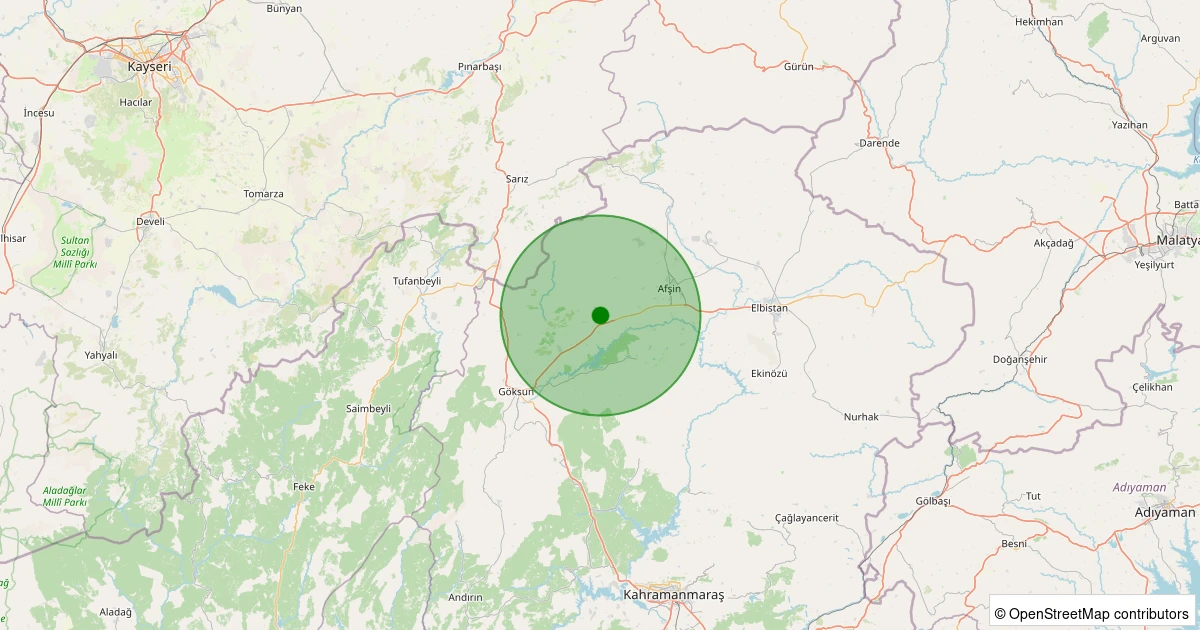 Son 7 gün içinde Göksun noktasından 100 km yarıçap içerisinde meydana gelen diğer depremler:
