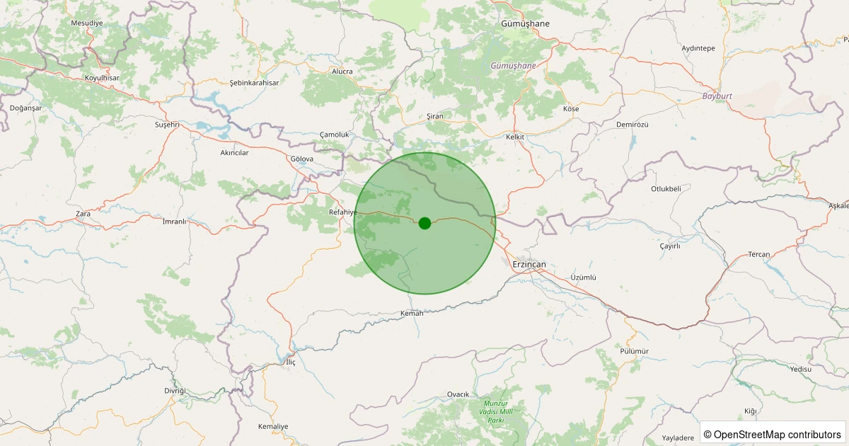 Son 7 gün içinde Kemah - Akbudak Köyü noktasından 100 km yarıçap içerisinde meydana gelen diğer depremler: