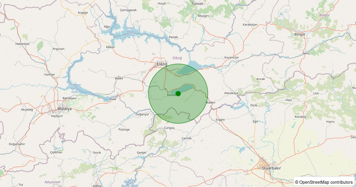 Son 7 gün içinde Sivrice - Sürek Köyü noktasından 100 km yarıçap içerisinde meydana gelen diğer depremler:
