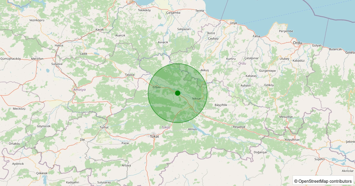 Son 7 gün içinde Niksar - Kümbetli Köyü noktasından 100 km yarıçap içerisinde meydana gelen diğer depremler: