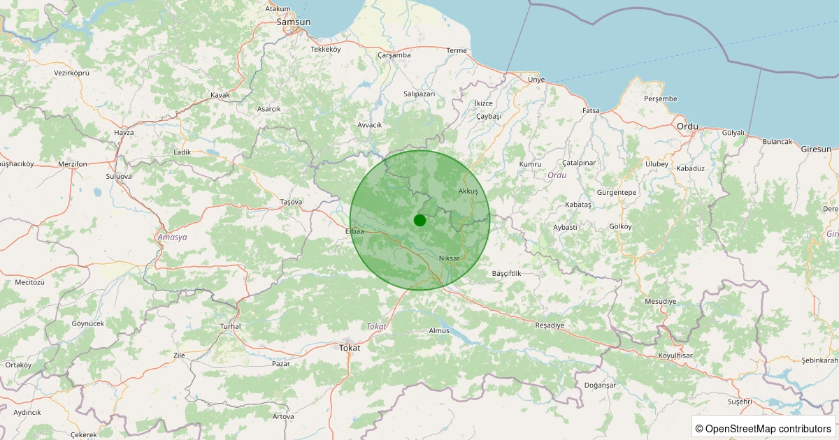 Son 7 gün içinde Niksar - Günebakan/Yenımahalle Köyü noktasından 100 km yarıçap içerisinde meydana gelen diğer depremler: