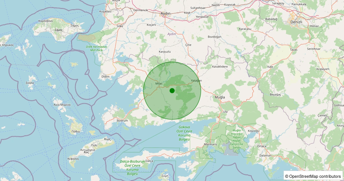 Son 7 gün içinde Milas - Çamlıbelen noktasından 100 km yarıçap içerisinde meydana gelen diğer depremler: