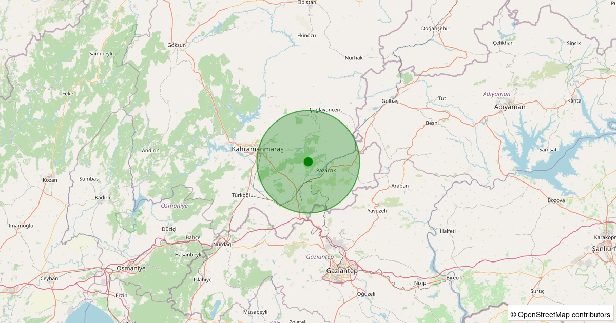 Son 7 gün içinde Dulkadiroğlu - Söğütlü noktasından 100 km yarıçap içerisinde meydana gelen diğer depremler: