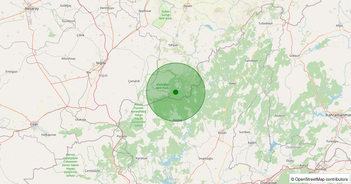 Son 7 gün içinde Yahyalı - Büyük Çakır noktasından 100 km yarıçap içerisinde meydana gelen diğer depremler: