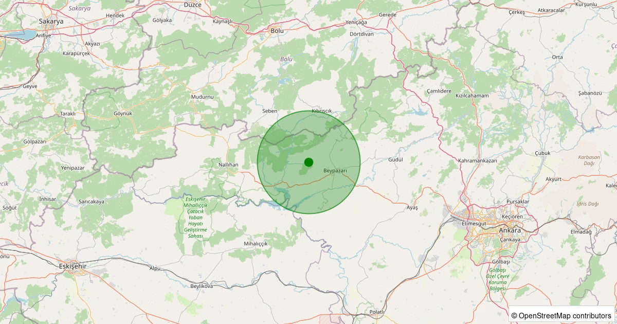 Son 7 gün içinde Beypazarı - Hırkatepe noktasından 100 km yarıçap içerisinde meydana gelen diğer depremler: