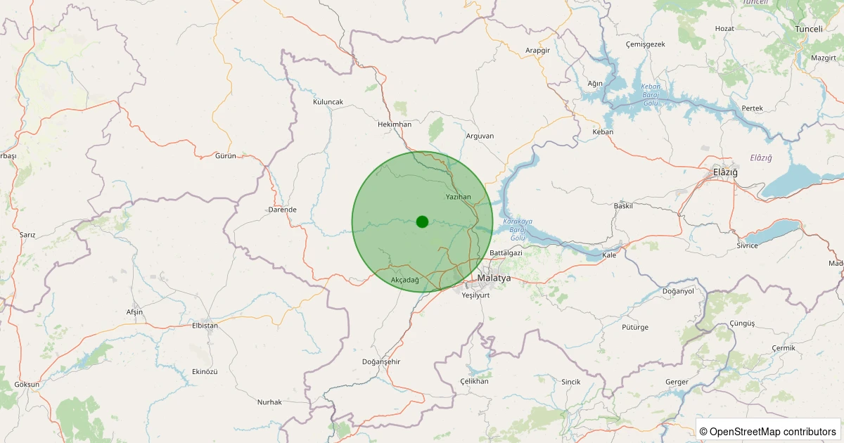 Son 7 gün içinde Yazıhan noktasından 100 km yarıçap içerisinde meydana gelen diğer depremler: