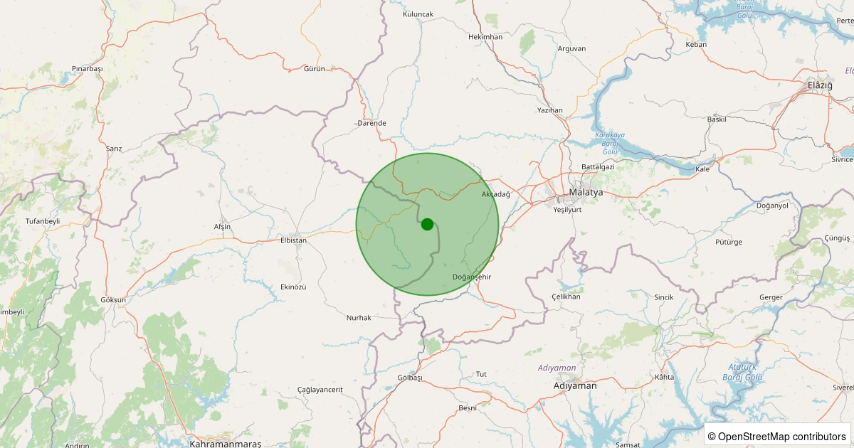 Son 7 gün içinde Akçadağ - Harunuşağı noktasından 100 km yarıçap içerisinde meydana gelen diğer depremler:
