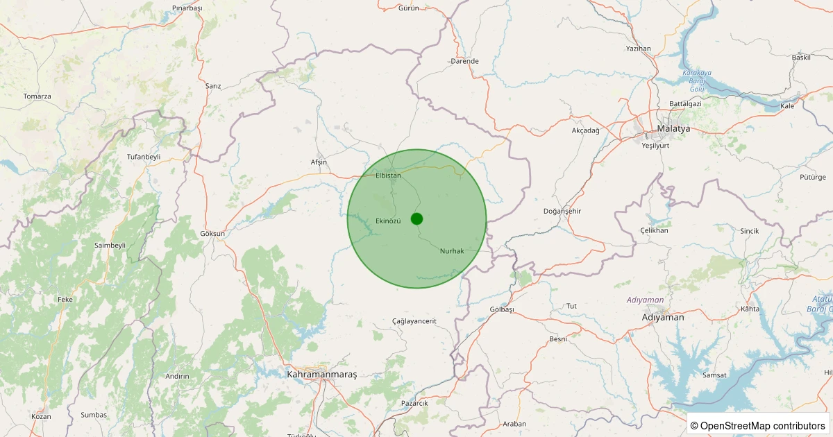 Son 7 gün içinde Nurhak - Hançıplaklar (Barış) noktasından 100 km yarıçap içerisinde meydana gelen diğer depremler: