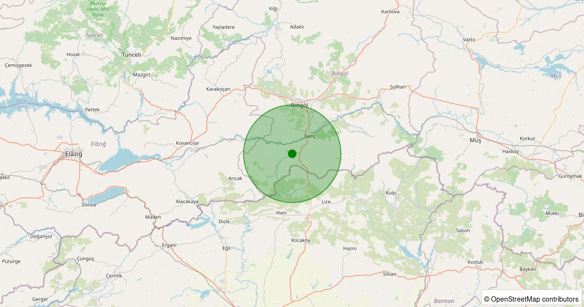 Son 7 gün içinde Genç - Karcı Köyü noktasından 100 km yarıçap içerisinde meydana gelen diğer depremler:
