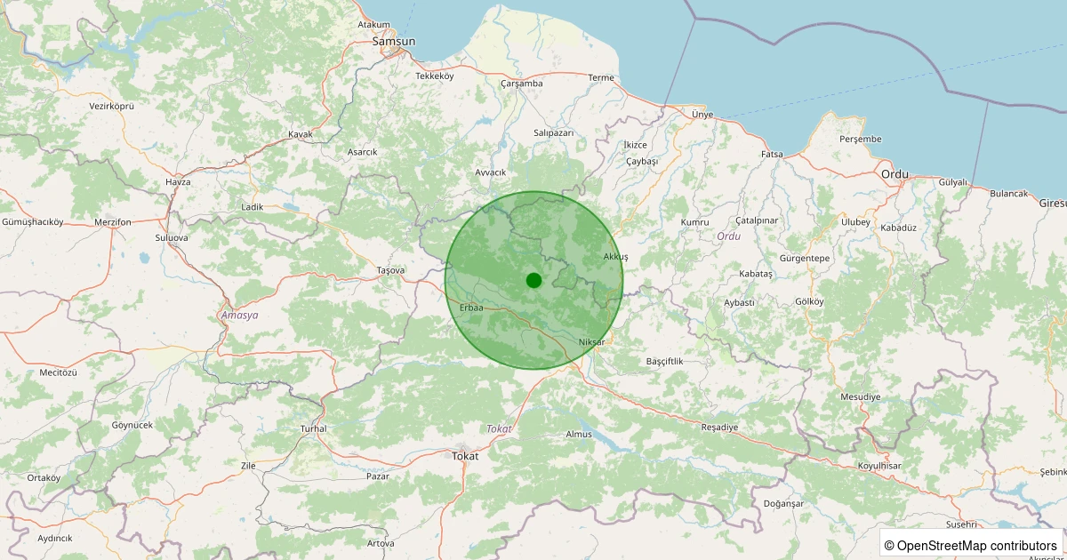 Son 7 gün içinde Erbaa - Madenli Köyü noktasından 100 km yarıçap içerisinde meydana gelen diğer depremler: