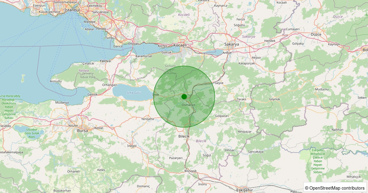 Son 7 gün içinde Osmaneli - Ericek Köyü noktasından 100 km yarıçap içerisinde meydana gelen diğer depremler: