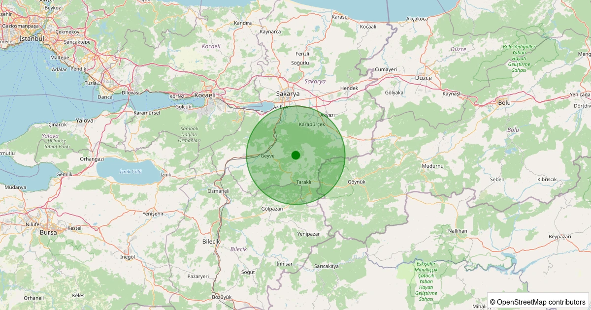 Son 7 gün içinde Geyve - Koru noktasından 100 km yarıçap içerisinde meydana gelen diğer depremler: