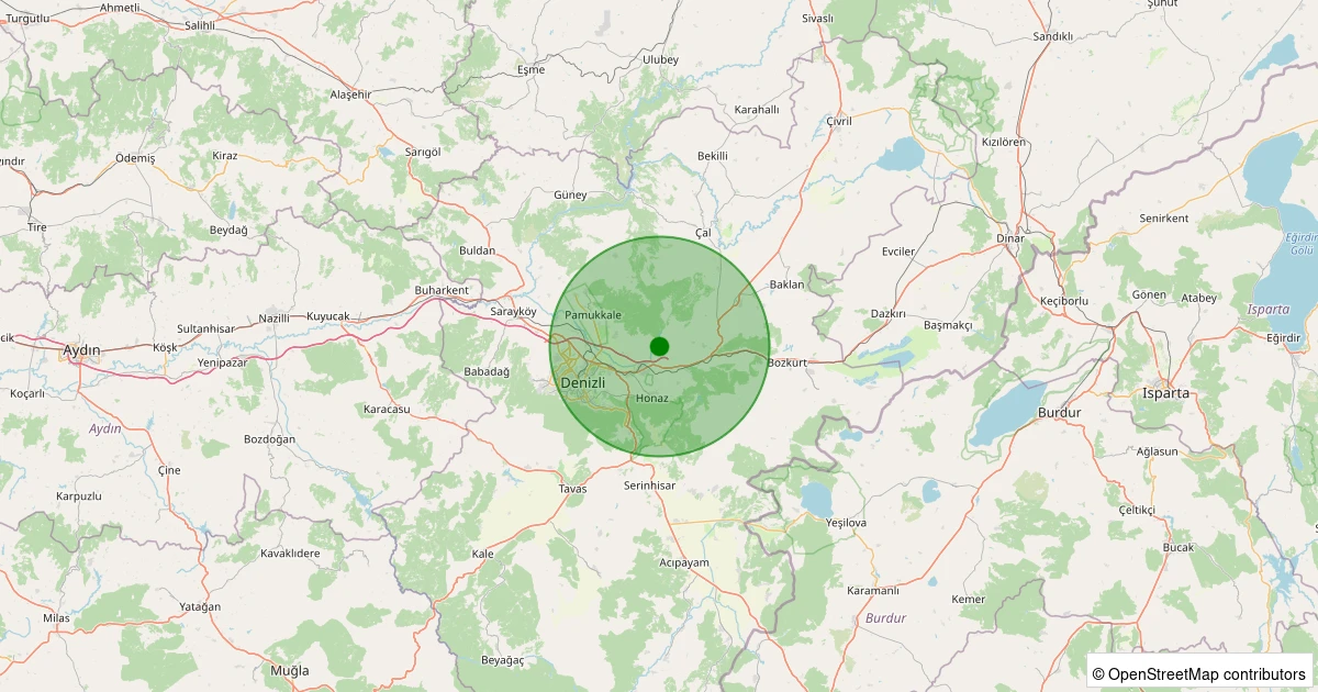 Son 7 gün içinde Honaz - Kocabaş noktasından 100 km yarıçap içerisinde meydana gelen diğer depremler: