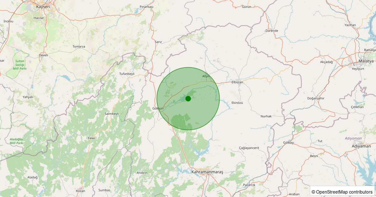 Son 7 gün içinde Göksun - Fındık noktasından 100 km yarıçap içerisinde meydana gelen diğer depremler: