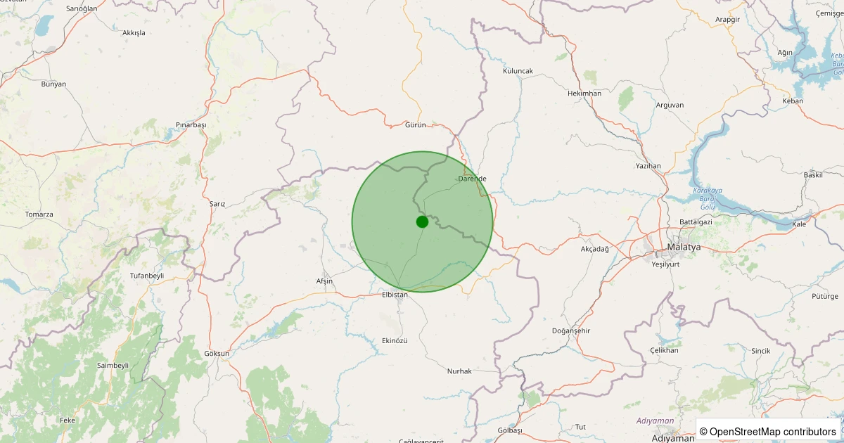 Son 7 gün içinde Elbistan - Gökcek Köyü noktasından 100 km yarıçap içerisinde meydana gelen diğer depremler: