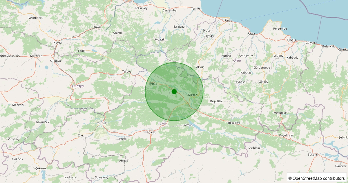 Son 7 gün içinde Niksar - Kümbetli Köyü noktasından 100 km yarıçap içerisinde meydana gelen diğer depremler: