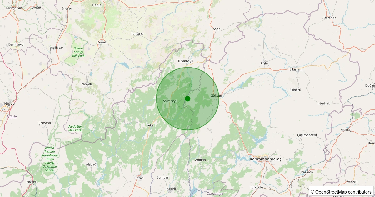 Son 7 gün içinde Göksun - Kaleboynu noktasından 100 km yarıçap içerisinde meydana gelen diğer depremler: