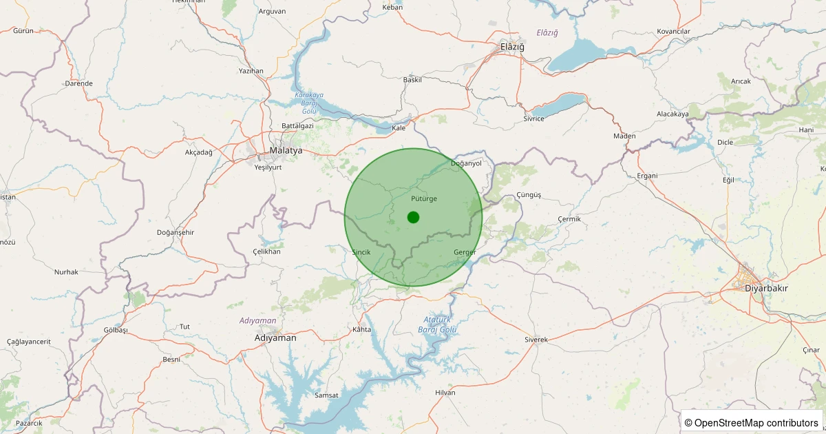 Son 7 gün içinde Pütürge - Gertan noktasından 100 km yarıçap içerisinde meydana gelen diğer depremler: