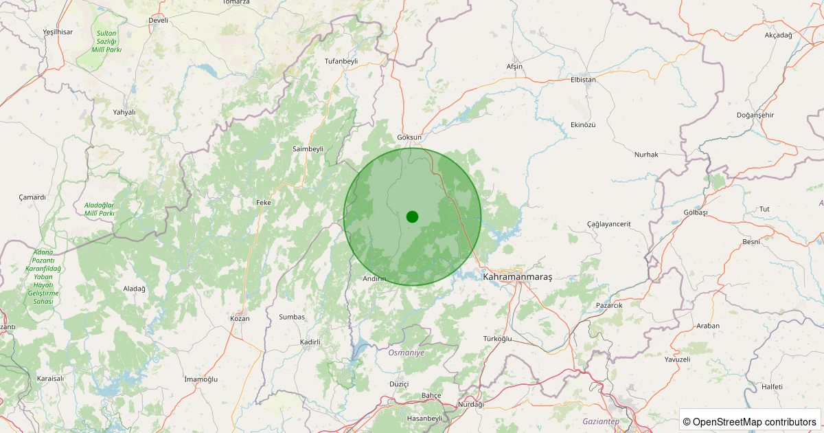 Son 7 gün içinde Andırın - Altınyayla Köyü noktasından 100 km yarıçap içerisinde meydana gelen diğer depremler: