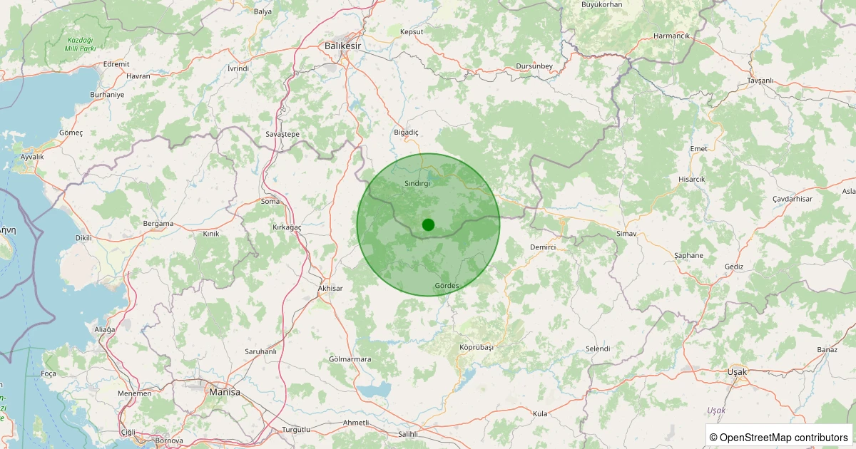 Son 7 gün içinde Sındırgı - Kınık noktasından 100 km yarıçap içerisinde meydana gelen diğer depremler: