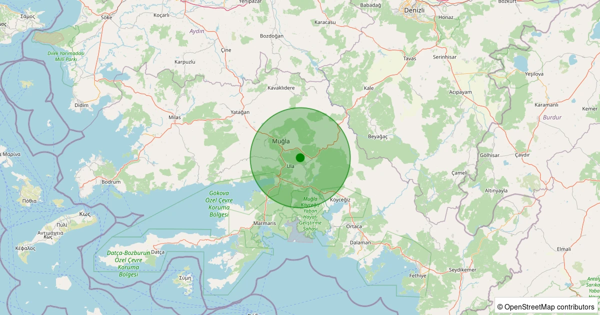 Son 7 gün içinde Menteşe - Yaraş noktasından 100 km yarıçap içerisinde meydana gelen diğer depremler: