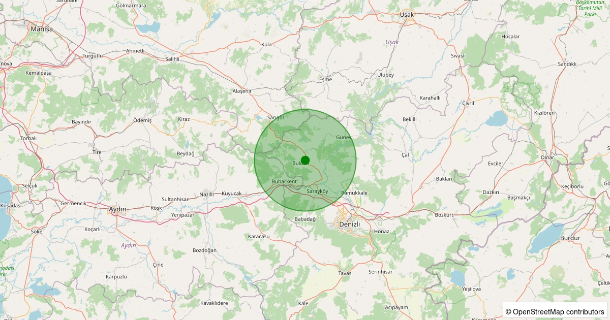 Son 7 gün içinde Buldan - Yeni noktasından 100 km yarıçap içerisinde meydana gelen diğer depremler:
