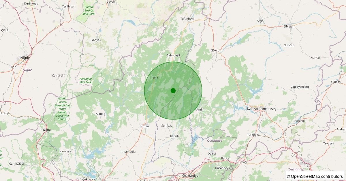 Son 7 gün içinde Kozan - Akçalıuşağı noktasından 100 km yarıçap içerisinde meydana gelen diğer depremler: