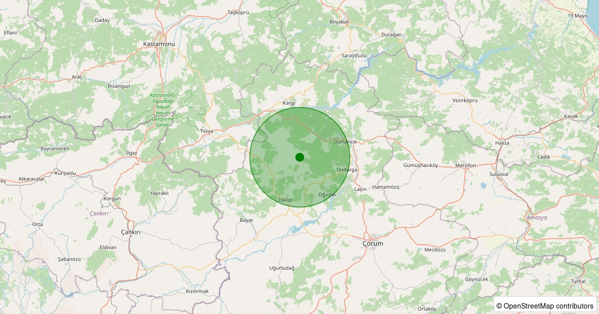 Son 7 gün içinde İskilip - Aşağışeyhler Köyü noktasından 100 km yarıçap içerisinde meydana gelen diğer depremler: