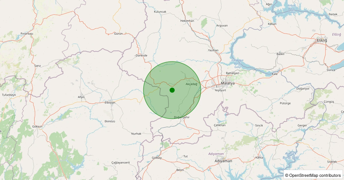Son 7 gün içinde Akçadağ - Ortaköy noktasından 100 km yarıçap içerisinde meydana gelen diğer depremler:
