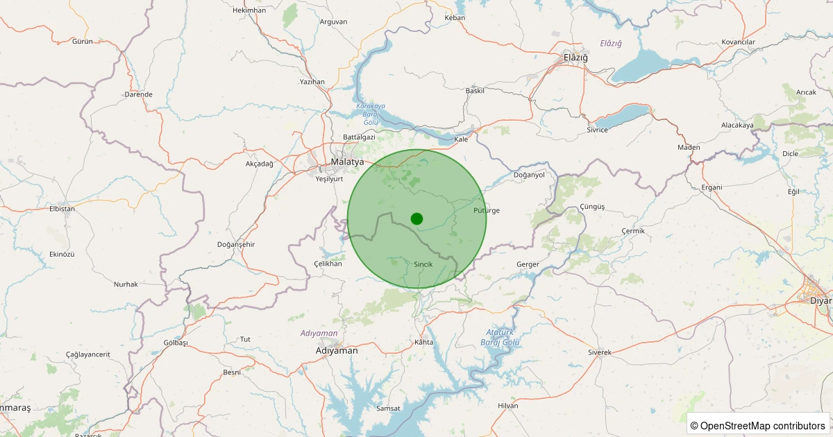 Son 7 gün içinde Pütürge - Arıtoprak Köyü noktasından 100 km yarıçap içerisinde meydana gelen diğer depremler: