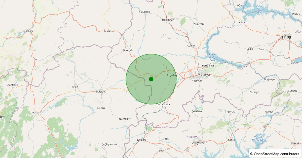 Son 7 gün içinde Akçadağ - Bekiruşağı noktasından 100 km yarıçap içerisinde meydana gelen diğer depremler: