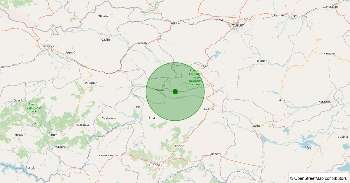 Son 7 gün içinde Karlıova - Kaynarpınar Köyü noktasından 100 km yarıçap içerisinde meydana gelen diğer depremler: