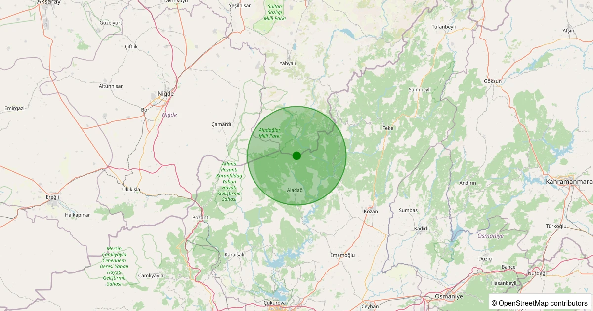 Son 7 gün içinde Yahyalı - Büyük Çakır noktasından 100 km yarıçap içerisinde meydana gelen diğer depremler: