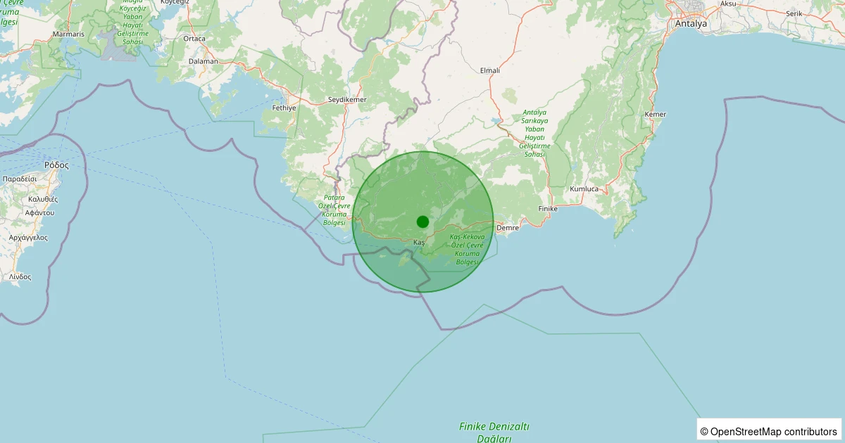 Son 7 gün içinde Kaş - Dereköy noktasından 100 km yarıçap içerisinde meydana gelen diğer depremler: