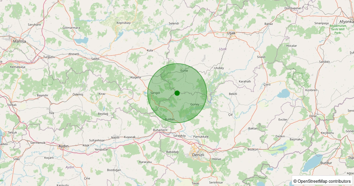 Son 7 gün içinde Buldan - Karaköy noktasından 100 km yarıçap içerisinde meydana gelen diğer depremler: