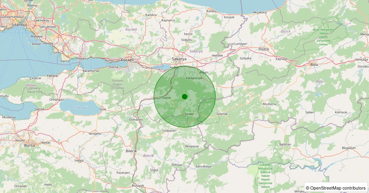 Son 7 gün içinde Geyve - Koru noktasından 100 km yarıçap içerisinde meydana gelen diğer depremler: