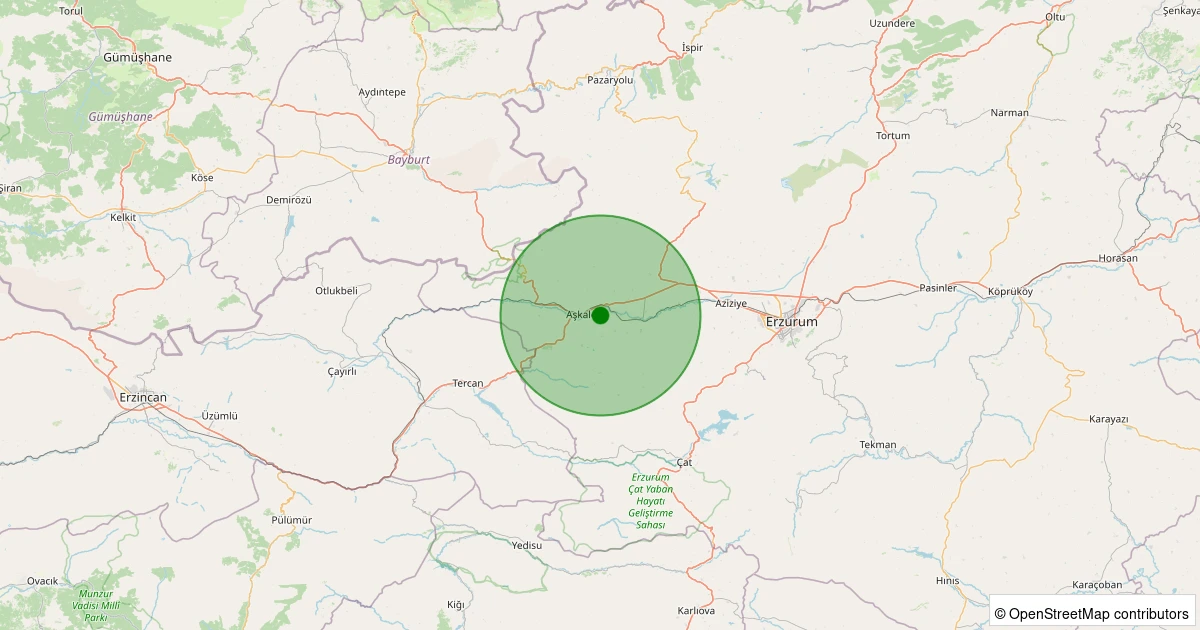 Son 7 gün içinde Aşkale - Meydan noktasından 100 km yarıçap içerisinde meydana gelen diğer depremler: