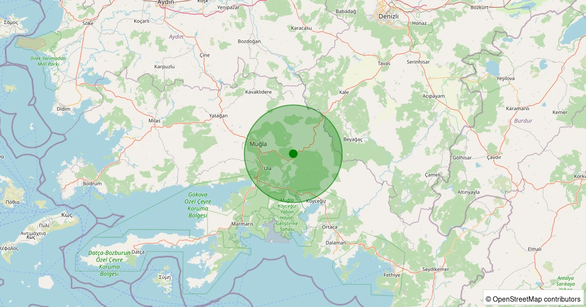 Son 7 gün içinde Ula - Yaylasöğüt noktasından 100 km yarıçap içerisinde meydana gelen diğer depremler: