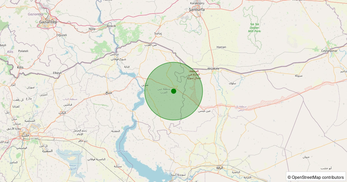 Son 7 gün içinde Ayn el-Arab, Halep (Suriye) - [25.24 km] Akçakale (Şanlıurfa) noktasından 100 km yarıçap içerisinde meydana gelen diğer depremler: