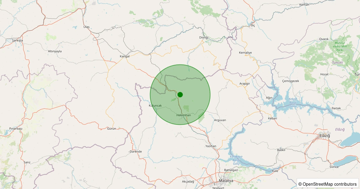 Son 7 gün içinde Hekimhan - Hasançelebi Köyü noktasından 100 km yarıçap içerisinde meydana gelen diğer depremler: