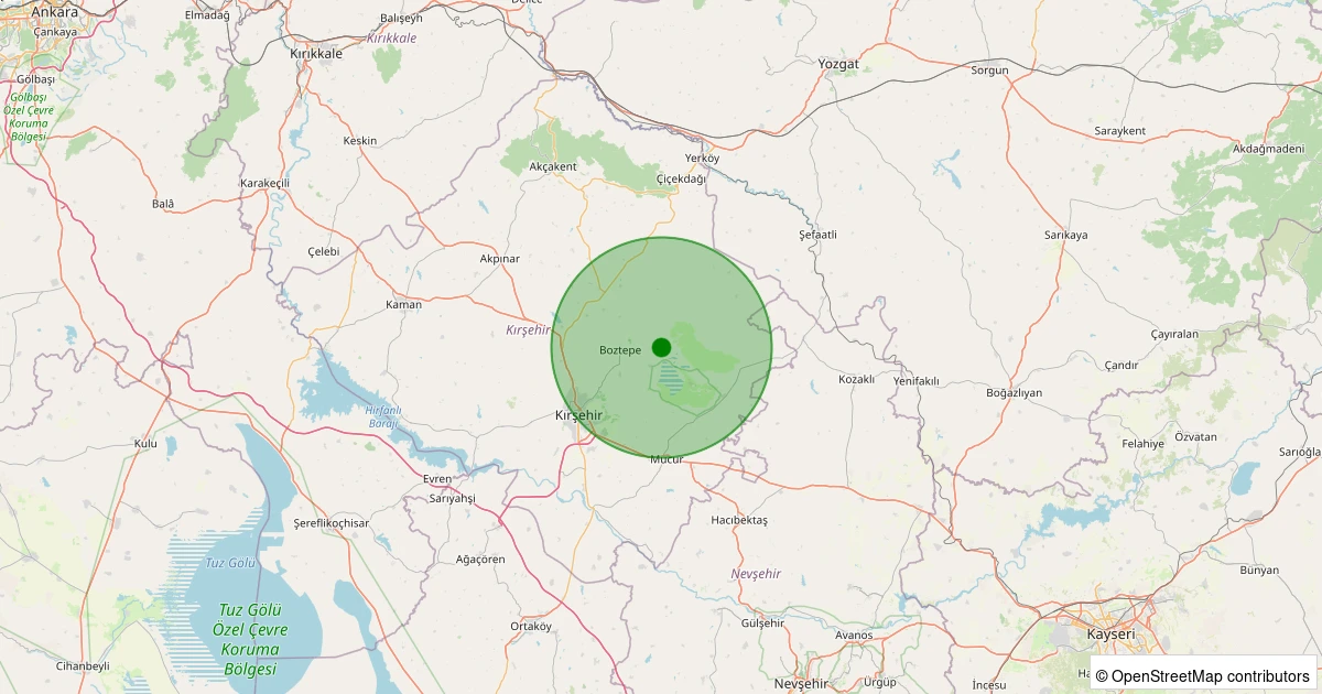 Son bir hafta içerisinde Kırşehir şehri Boztepe noktasından 100 km yarıçap içerisinde toplamda 18 deprem kaydedilmiştir. Bu depremlerden en büyüğü 1.7 büyüklüğünde ve en sığ odaklısı 0.00 kilometre derinlikte gerçekleşmiştir.