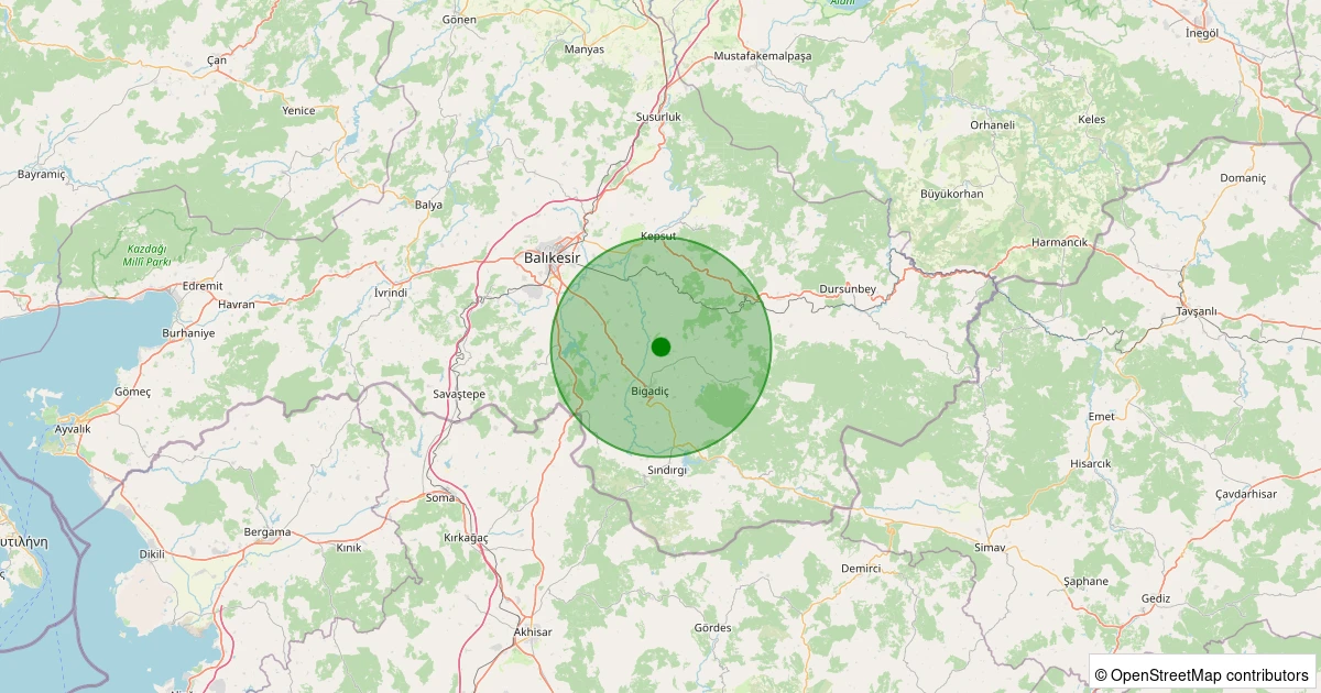 Son bir hafta içerisinde Balıkesir şehri Bigadiç - İskele noktasından 100 km yarıçap içerisinde toplamda 626 deprem kaydedilmiştir. Bu depremlerden en büyüğü 3.0 büyüklüğünde ve en sığ odaklısı 0.00 kilometre derinlikte gerçekleşmiştir.