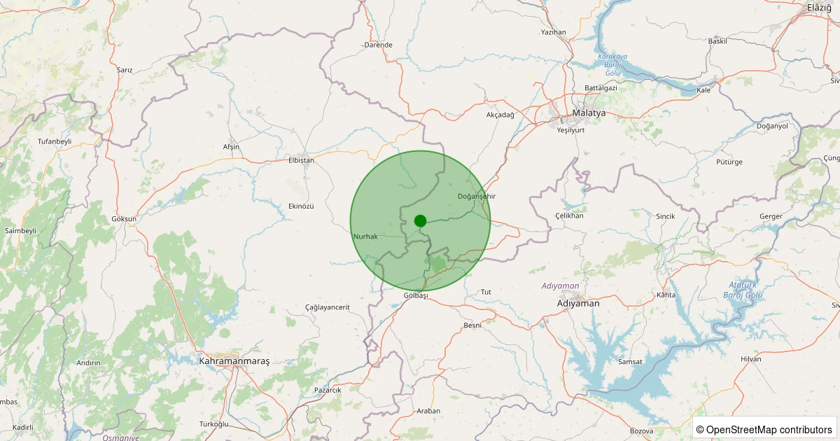 Son 7 gün içinde Doğanşehir - Küçüklü noktasından 100 km yarıçap içerisinde meydana gelen diğer depremler: