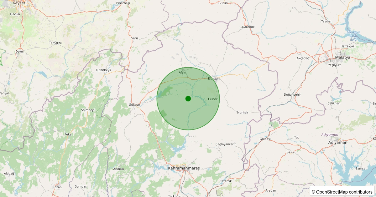 Son 7 gün içinde Göksun - Karadut noktasından 100 km yarıçap içerisinde meydana gelen diğer depremler: