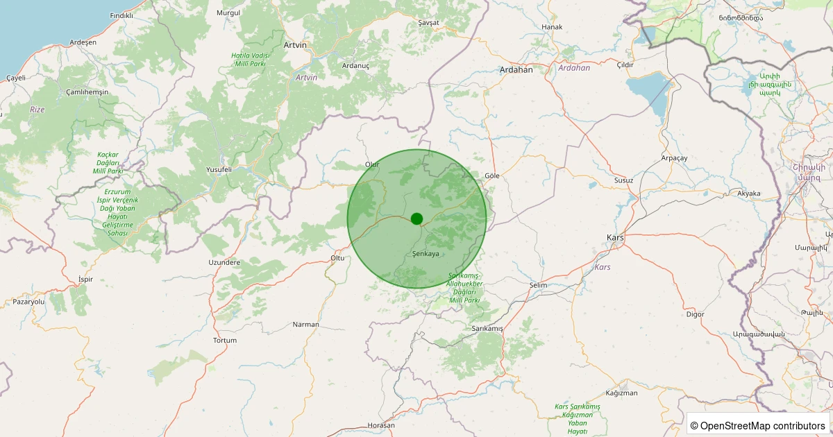 Son 7 gün içinde Şenkaya - Hoş noktasından 100 km yarıçap içerisinde meydana gelen diğer depremler: